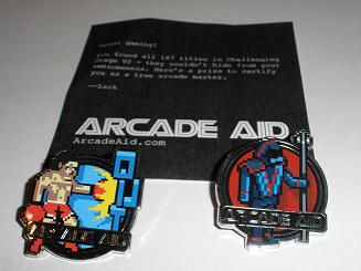 In early November the first packages began arriving containing not one, but two pins depicting game titles found within the Arcade Aid Challenging Stage v.2.0. Players received either a Face Off, Punch Out, Tron or Tron Sentry pin and were prompted to wear them proudly as a badge of honor as a true gamer. Just as players began to calm down from the excitement generated by the arrival of the new pins, another discovery was made. The first 999 players to complete the challenge began receiving a second package that contained Arcade Aid posters that were hand numbered, reflecting what number the player was to finish the game, and embossed with the Arcade Aid logo.