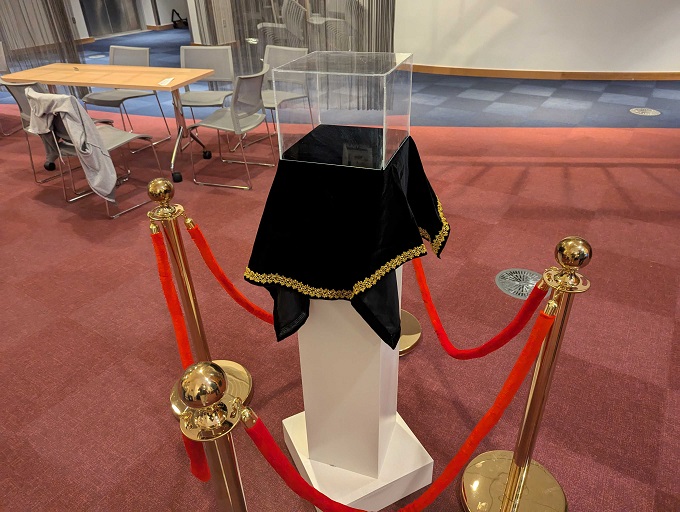The narrative of the 2025 MIT Mystery Hunt revolved around a heist at a gala event. And Death & Mayhem transformed the fourth floor of the Stata Center into an actual gala event to serve as both command center and experiential hub for the weekend. Bartenders would print out receipts and hand over physical puzzles to teams that unlocked the right passphrase over the course of the hunt, and even offer challenges to proceed to the next step.