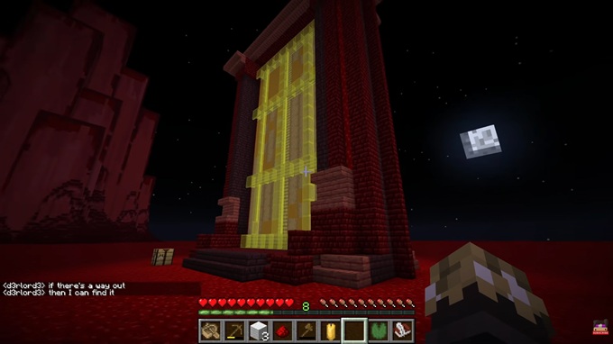 That is not to say that Avery has no personal agency in progressing forward: one particularly intricate puzzle appears in the center of a lake in between six statues. Avery “solves” the puzzle by spending four minutes breaking through the netherite block that acts as the lock, before typing “stupid puzzle” into chat. Finally, around halfway through the video, Avery encounters D3rlord3. And during that conversation, he’s provided a link to the events leading up to their encounter, from Derek’s perspective, although the video has since been “deleted”.